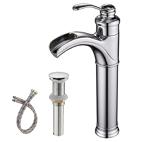 Customer reviews Greenspring Vessel Sink Faucet Chrome Waterfall Spout Single Hole Single Handle With Pop Up Drain Without Overflow Commercial Bath Vanity Bathroom Faucets Supply Line Lead-Free